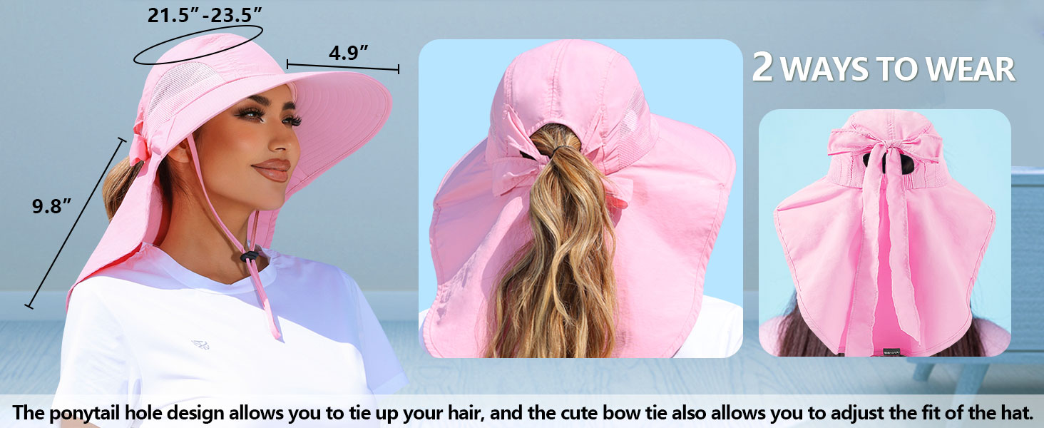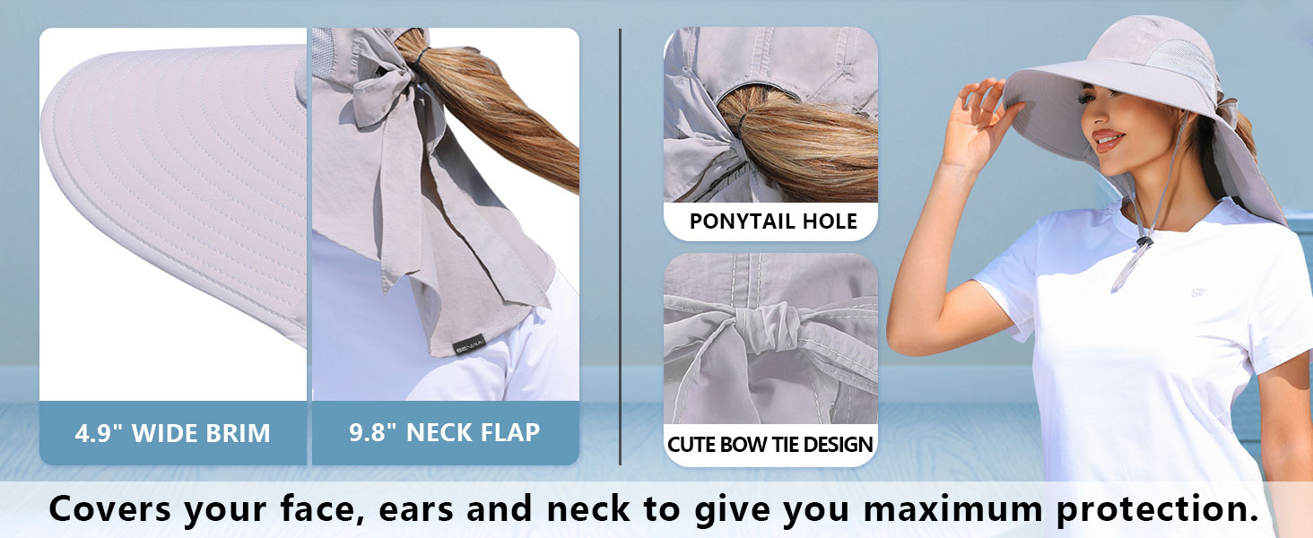 - 【UV Protection for Head and Neck】Featuring a 4.9 inch wide brim and a 9.8 inch extra back coverage, our sun hats for women offers comprehensive protection for your face, ears, and neck from sunlight. Enjoy outdoor activities to the fullest without worrying about sun damage.